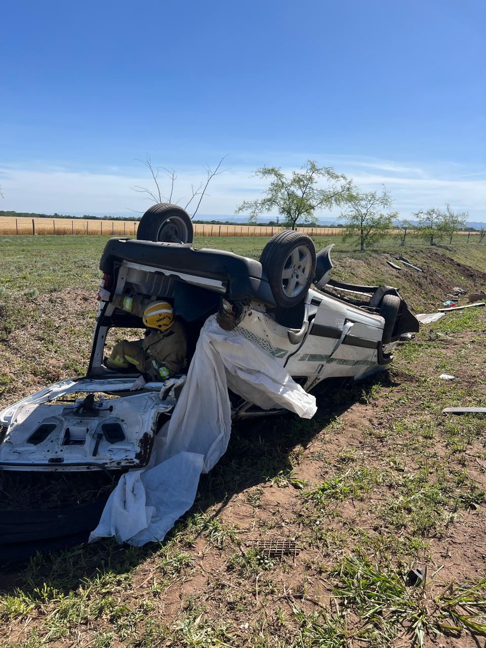 Una hora más tarde, cerca de las 17:00, personal policial acudió al segundo anillo de Circunvalación, a la altura de barrio Villa Los Llanos de Juárez Celman, donde una Peugeot Partner perdió el control y terminó volcando. En el vehículo viajaban un hombre y una menor, quienes también fueron diagnosticados con politraumatismos y derivados al Sanatorio Allende Cerro para una evaluación más completa. El vehículo fue secuestrado y se labraron las actuaciones de rigor.