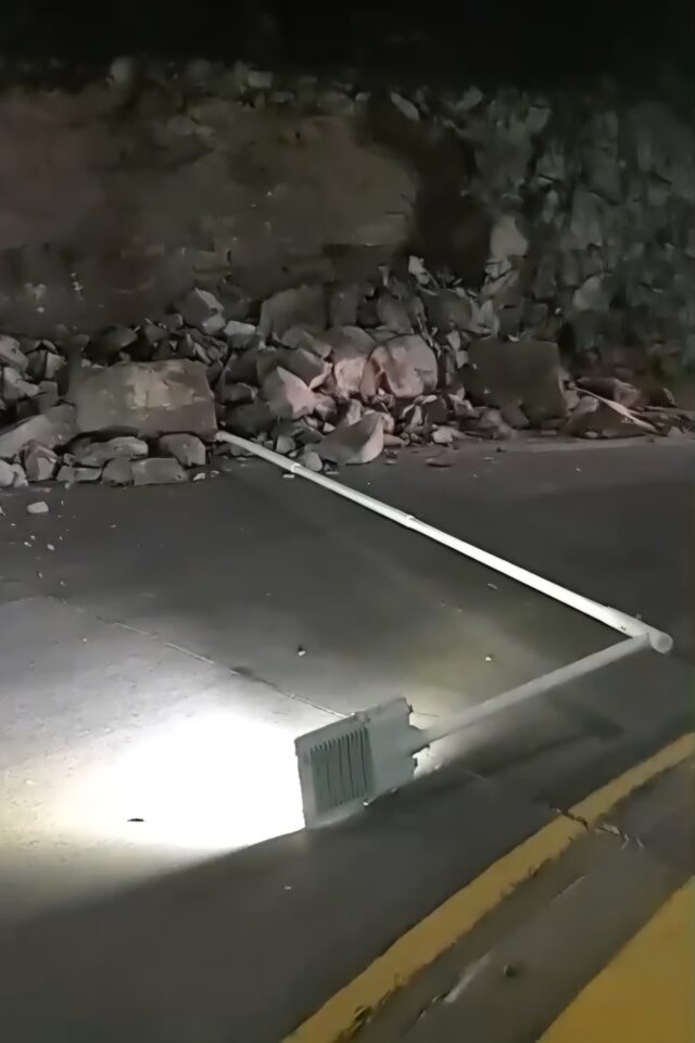 Piedras de gran tamaño y un poste de alumbrado cortaron circulación en la rotonda de ingreso al Barrio El Mirador. Trabajaron Bomberos y policía. No hubo que lamentar heridos.